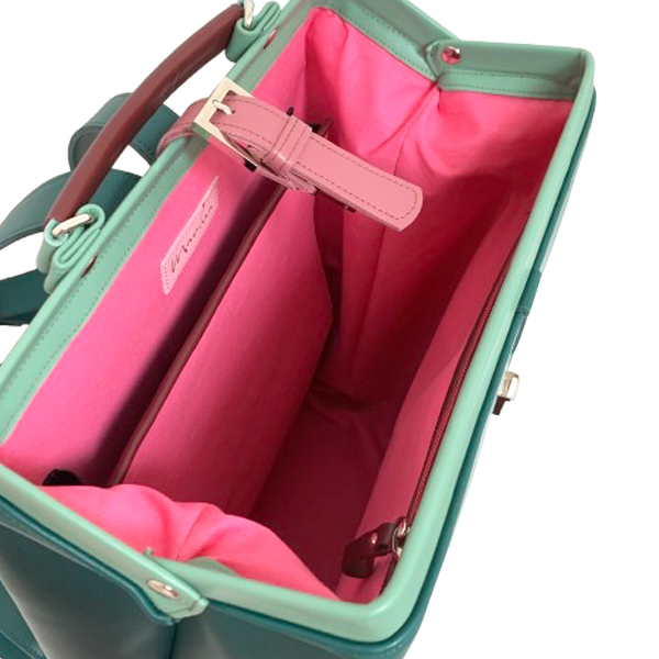 Het is een ruime tas met een groot ritsvak achterop (veilig tegen je rug) en een ritsvak en/of telefoonvak binnenin. De tas heeft desgewenst een laptopvak. En een sleutelkoord. Ook kun je tussen wel of geen bies kiezen.