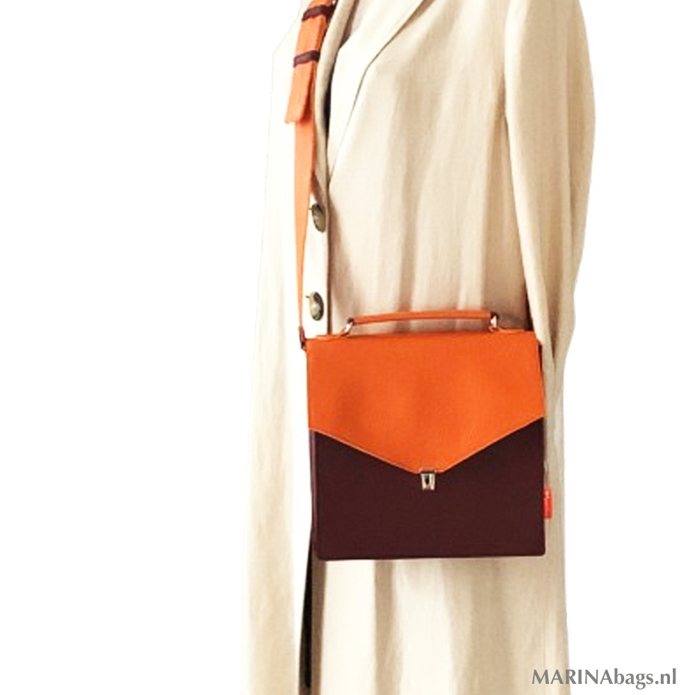 Schoudertas ROME | oranje-bordeaux | 25x25cm